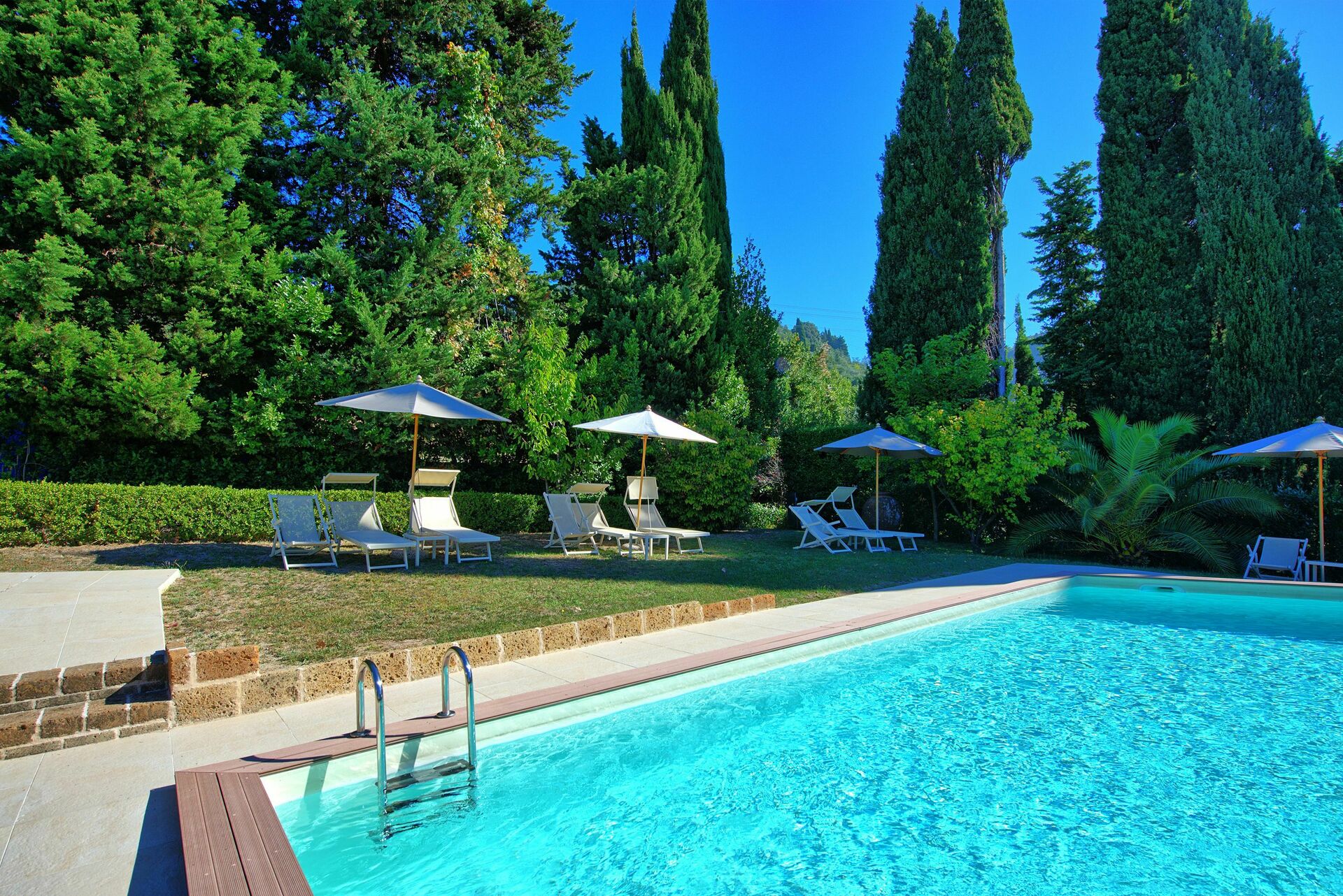 La villa è stata recentemente ristrutturata e dispone di arredi di pregio, pareti affrescate, pezzi unici d’arte e comfort di ogni genere. All’esterno un grande giardino (8000 m2) molto curato offre prati, giardini all’italiana, alberi da frutta (mandarini, aranci, kiwi, peri), fontane e una grande terrazza panoramica ed attrezzata che permette agli ospiti di mangiare all’aria aperta all’ombra di un grande gazebo. Gli ospiti possono inoltre usufruire di una bella piscina privata.