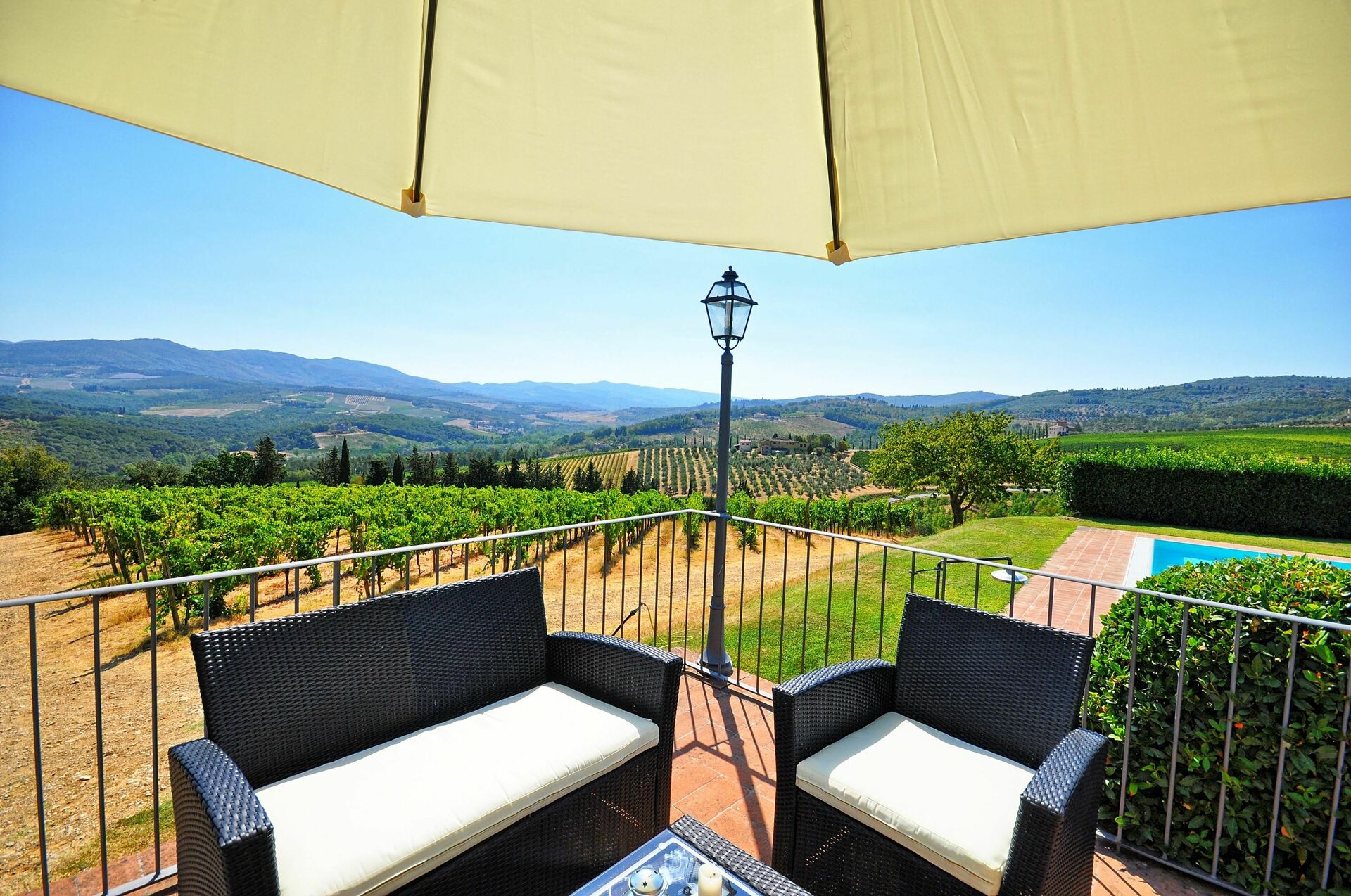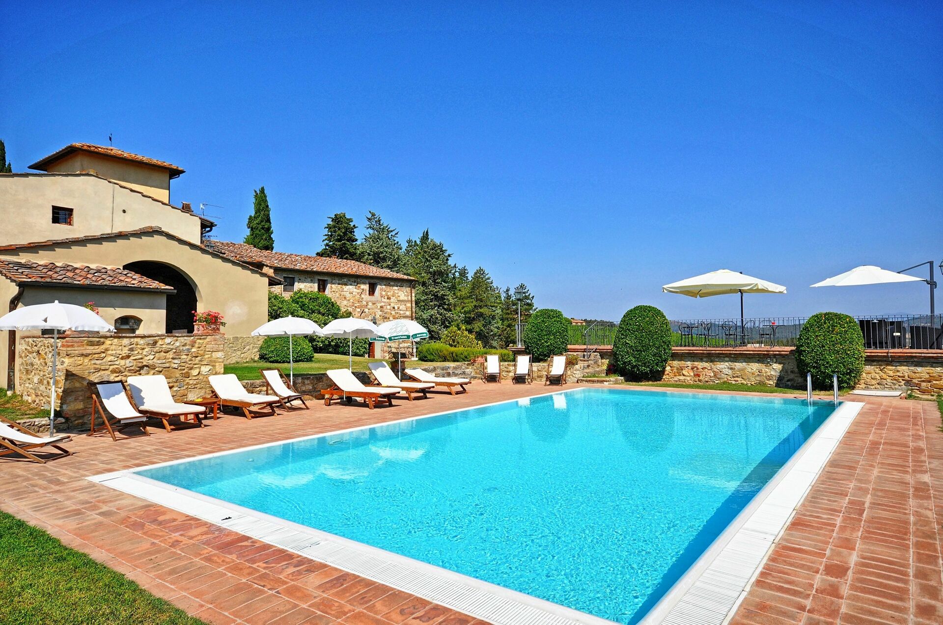 Bella proprietà composta da 6 appartamenti ricavati dalla ristrutturazione di un antico complesso colonico. Situata sulle colline del Chianti, la proprietà dispone di ampi spazi esterni e di una bella piscina panoramica che si affaccia sugli splendidi vigneti della tenuta. La posizione della struttura è strategica trovandosi a breve distanza da Mercatale (negozi di ogni genere) e da Firenze che dista solo 22 km. L’arredamento degli appartamenti è confortevole in stile rustico toscano. Gli appartamenti Tenuta 1 e 2 si trovano a circa 50 metri dalla piscina mentre gli altri distano solo pochi metri. Una bella terrazza panoramica con ombrelloni e divanetti si trova in prossimità della piscina. Sempre in prossimità della piscina è presente un locale coperto e da cui è possibile collegarsi gratuitamente ad internet. Vicino alla reception (dove si trovano gli appartamenti Tenuta 1 e 2) è presente un gazebo in muratura attrezzato con tavoli e poltroncine da cui è possibile collegarsi gratuitamente ad internet.