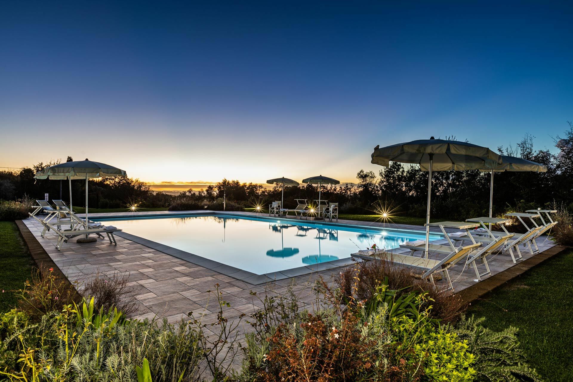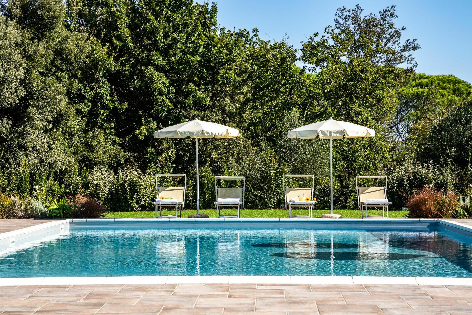 Piscina, Barbeque, Recintato/a, Arredamento da giardino, 16 Sdraio, Arredamento da terrazza